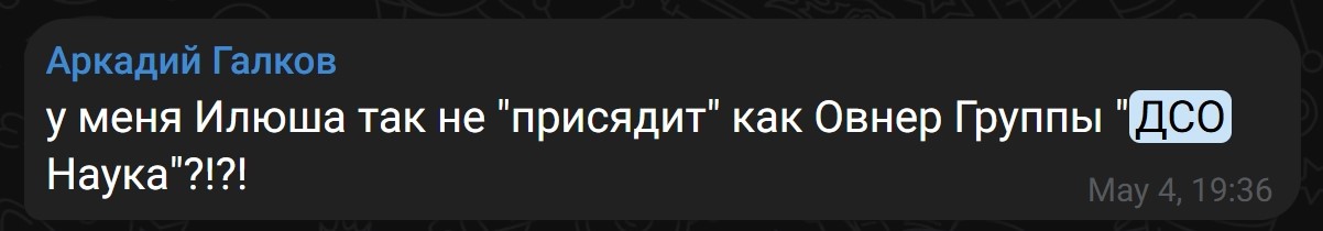 Администратор Группы «ДСО наука» в Telegram: Илья Крымов (Пока Используется вслепую)
