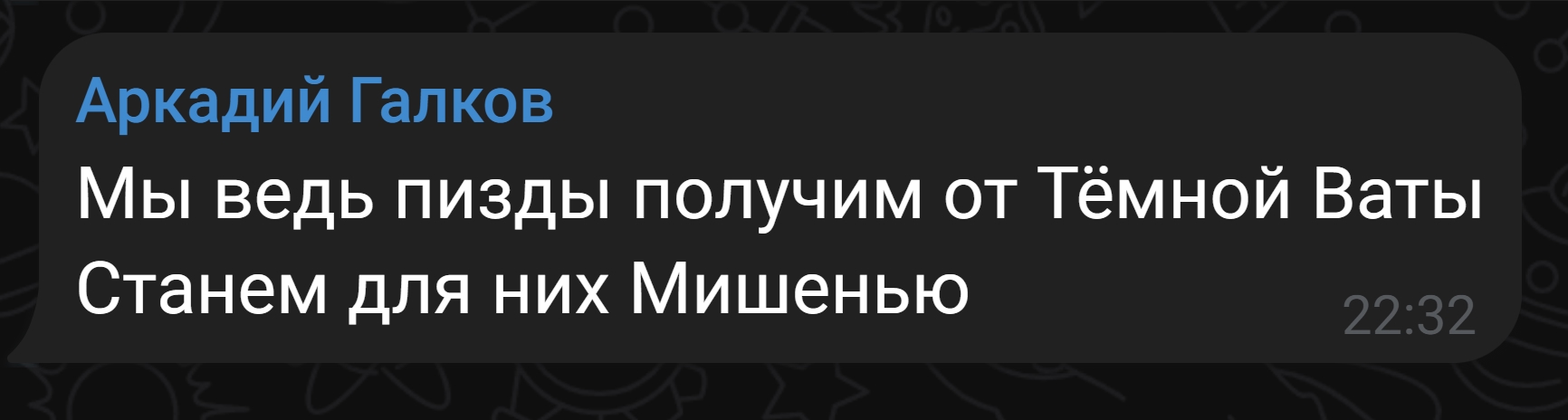 | 11 | «Пиз*** на фронт петух» | Неопределённый адресат (В качестве адресата все участники конфликта) | Разжигание ненависти, призыв к насилию, Унижение достоинства | 20.3.1 КоАП РФ, 282 УК РФ | — | - | - |